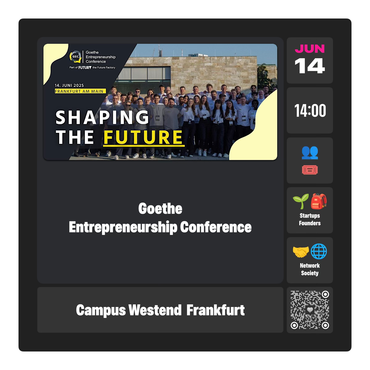 Durch unsere Messe, die Goethe Entrepreneurship Conference, bringen wir Studenten mit der gesamten Start-Up-Szene zusammen, um gemeinsam zukünftige Innovationen zu gestalten.