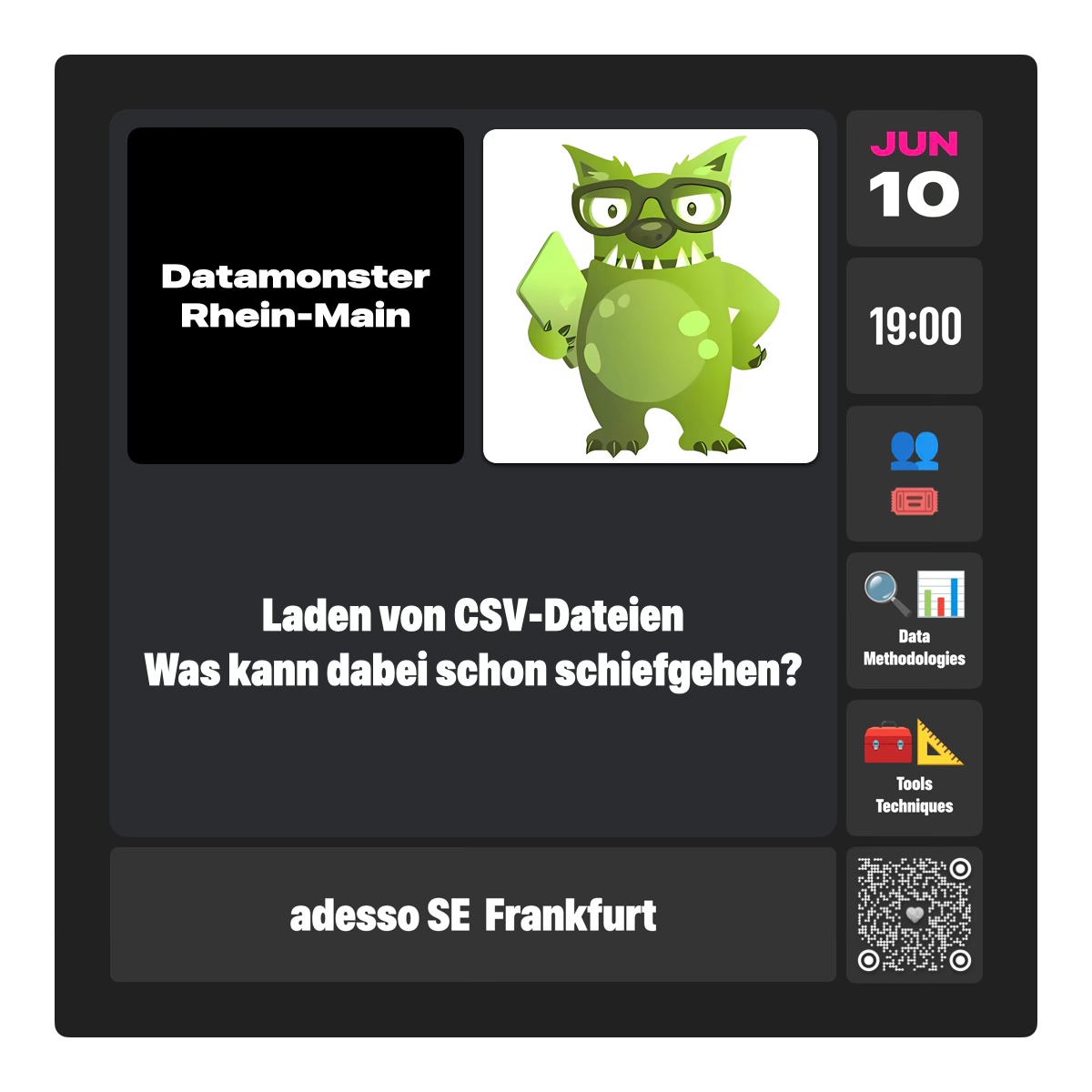 Unterstützt euch dabei gerne mit 1-2 Slides (nur Tonspur ist aber natürlich auch in Ordnung). Hier reichen so 15-20 Minuten.📖 Eure Story sollte den Epic Fail beinhalten, aber auch eine Lösung, falls ihr eine hattet, damit wir daraus lernen können.