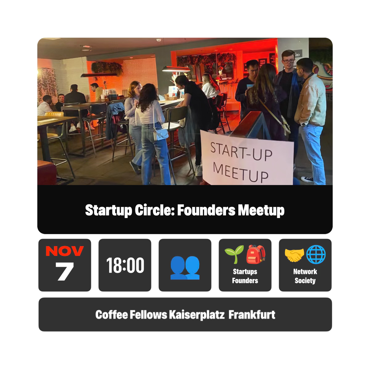 Join the Frankfurt Founders Club meetup designed for first-time founders who want to connect, share, and grow together.