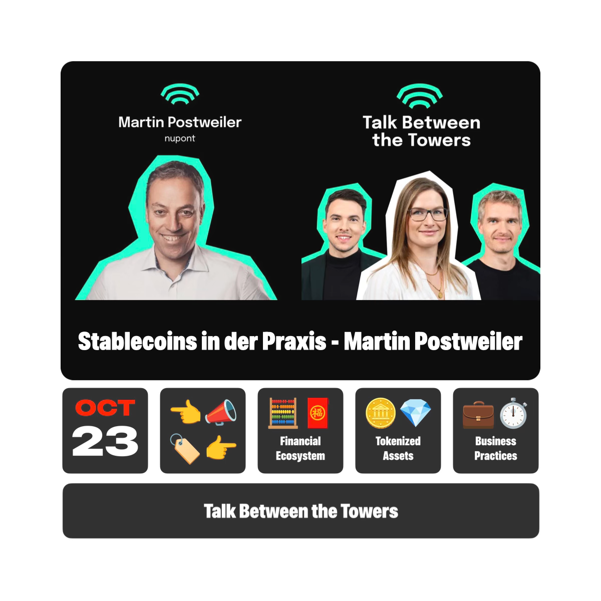 Darüber sprechen Sarah und Dirk in Folge #140 mit Martin Postweiler, Co-Founder von nupont. Seine Plattform baut die Brücke zwischen traditioneller Finanzwelt und Blockchain-Technologie – er kennt die Praxis-Herausforderungen also aus erster Hand.