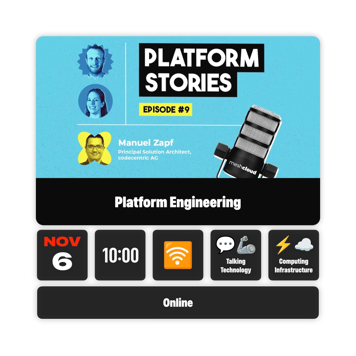 Platform Stories ist ein Live-Video-Podcast, moderiert von den meshcloud-Mitbegründern Jörg (CEO) und Christina (CRO). In jeder Folge begrüßen wir Gäste aus der Platform Engineering-Szene – darunter Opinion-Leader und andere bekannte Persönlichkeiten. Sie haben inspirierende Geschichten mitgebracht und diskutieren mit uns über die neuesten Entwicklungen und Trends im Platform Engineering.