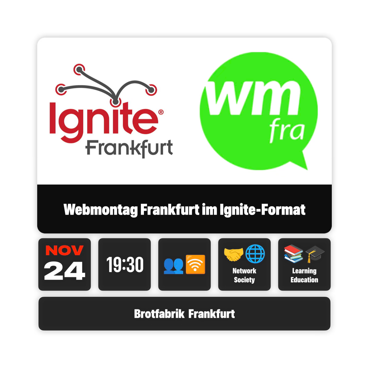 Der 117. Webmontag Frankfurt wird am 24. November 2025 im Ignite-Format stattfinden