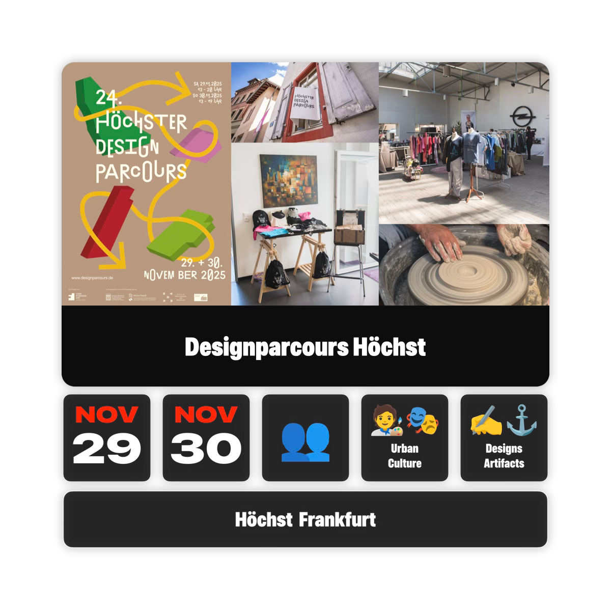 Diese nutzen die Räume, um ihre Ideen, Werke und Produkte einem breiten Publikum zu präsentieren. Zusätzlich gibt es Veranstaltungen und Aktivitäten von in Höchst ansässigen Kreativen, die ihre Türen öffnen, um Einblicke in ihr Schaffen zu gewähren.