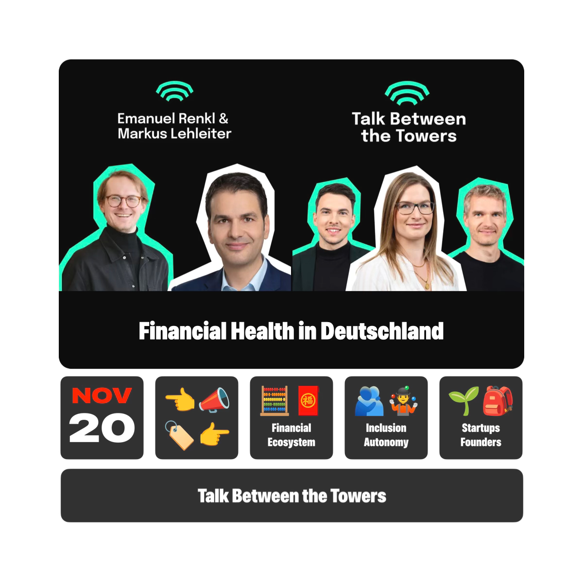 Sarah spricht mit Emanuel Renkl von der Financial Health Initiative und Markus Lehleiter vom House of Finance & Tech darüber, was der erste Financial Health Score für Deutschland bedeutet, welche Gruppen besonders gefährdet sind und welche Rolle KI dabei spielen kann.
