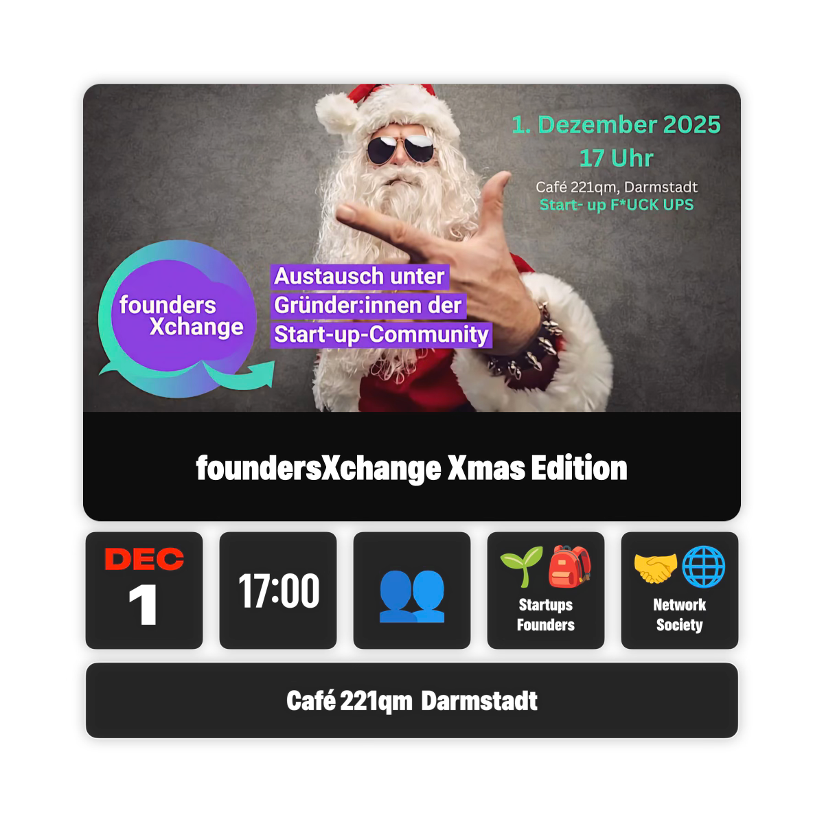 It has almost become a cherished tradition that the Xmas Edition of foundersXchange Darmstadt is all about Start-up F:CK UPS! Founders talk openly about their biggest missteps on their startup journey, their craziest decisions, and most expensive lessons—and why exactly these moments have helped them move forward.