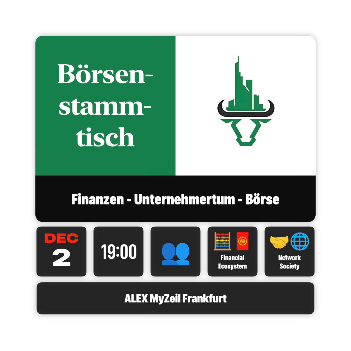 Jeden 1. Dienstag des Monats um 19:00 Uhr: tausche dich zu Themen rund um Finanzen, Unternehmertum und Börse in einer entspannten Runde aus!