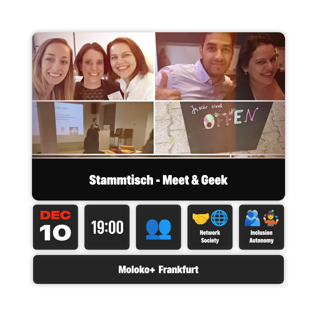 You want to get in touch with our great Women Techmakers Community? You want to have a great evening with some nice drinks and talk about work, hobbies, technical stuff? Then you should join our ‘Stammtisch - Meet & Geek’. One Wednesday of the month we want to meet somewhere in Frankfurt and have a great evening together in a cozy atmosphere.