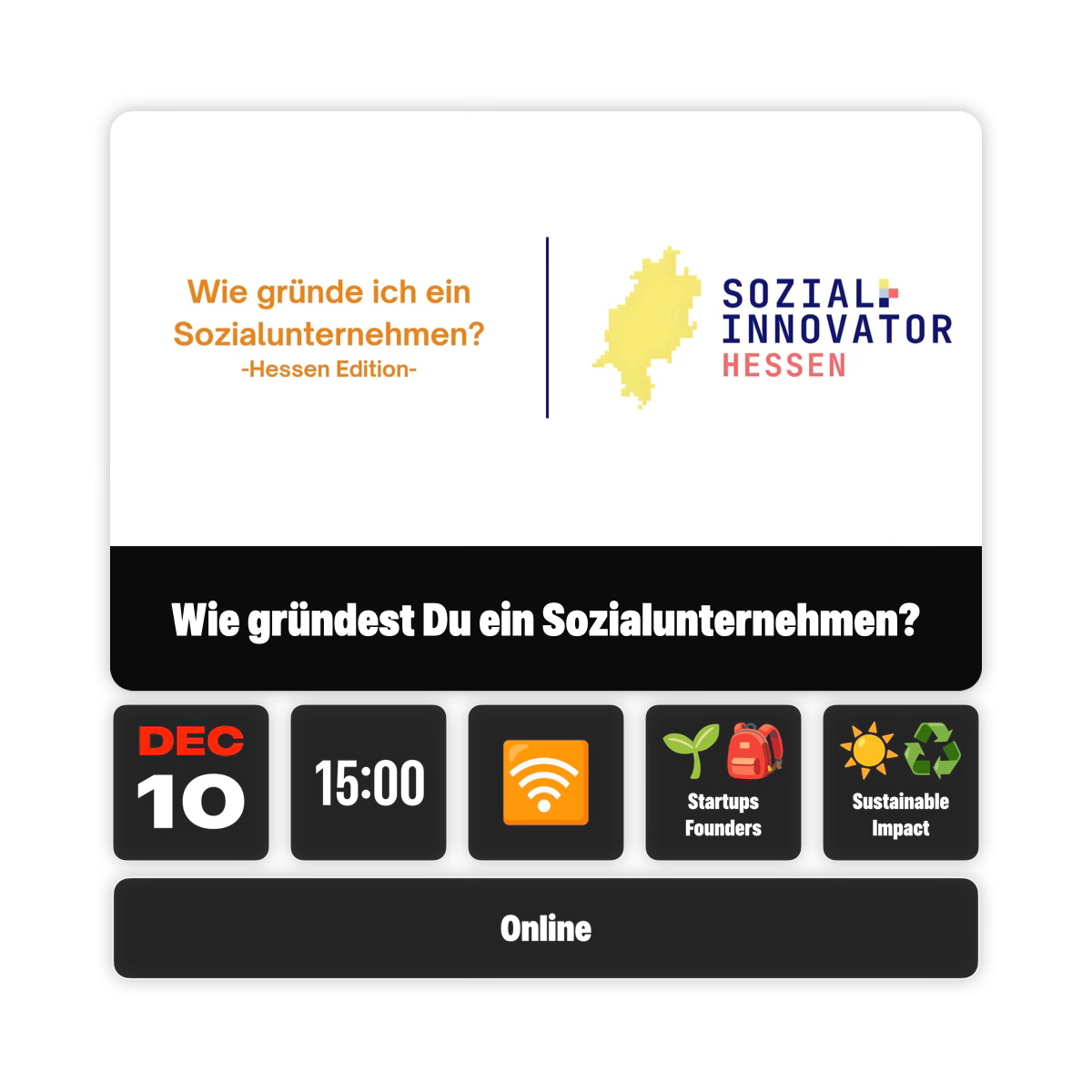 Online-Workshop für ALLE aus Hessen, die Interesse haben, ein Sozialunternehmen zu gründen.