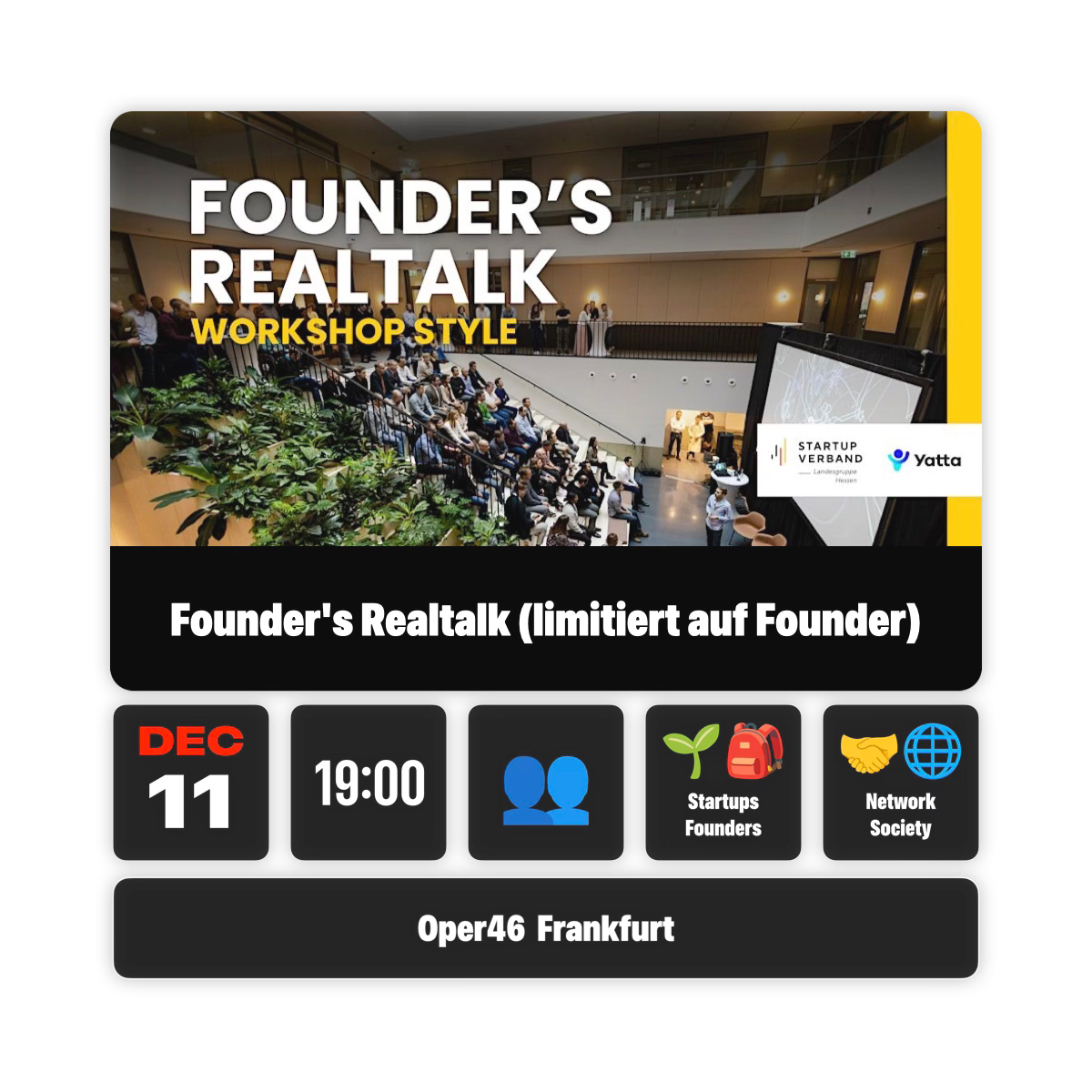 Founder’s Realtalk - Workshop Style: Frankfurt, dich erwartet ein ganz besonderer Austausch.