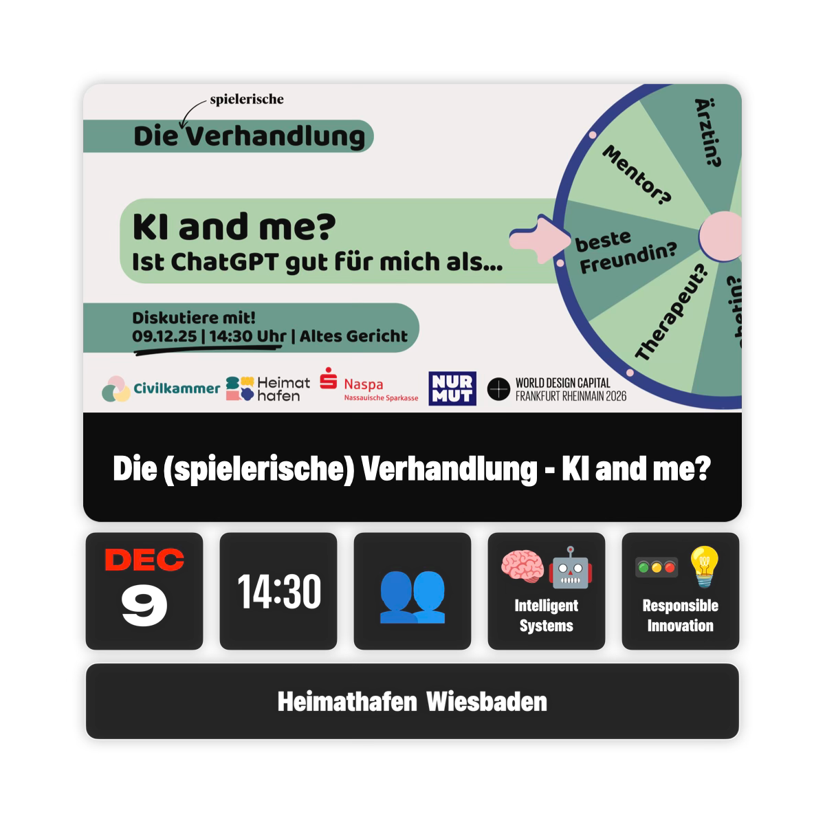 Ist ChatGPT gut für mich als…In diesem interaktiven Format fragen wir: Wie gut ist Künstliche Intelligenz als persönliches Gegenüber – und wo ziehen wir die Grenze zwischen Nähe und Schutz?