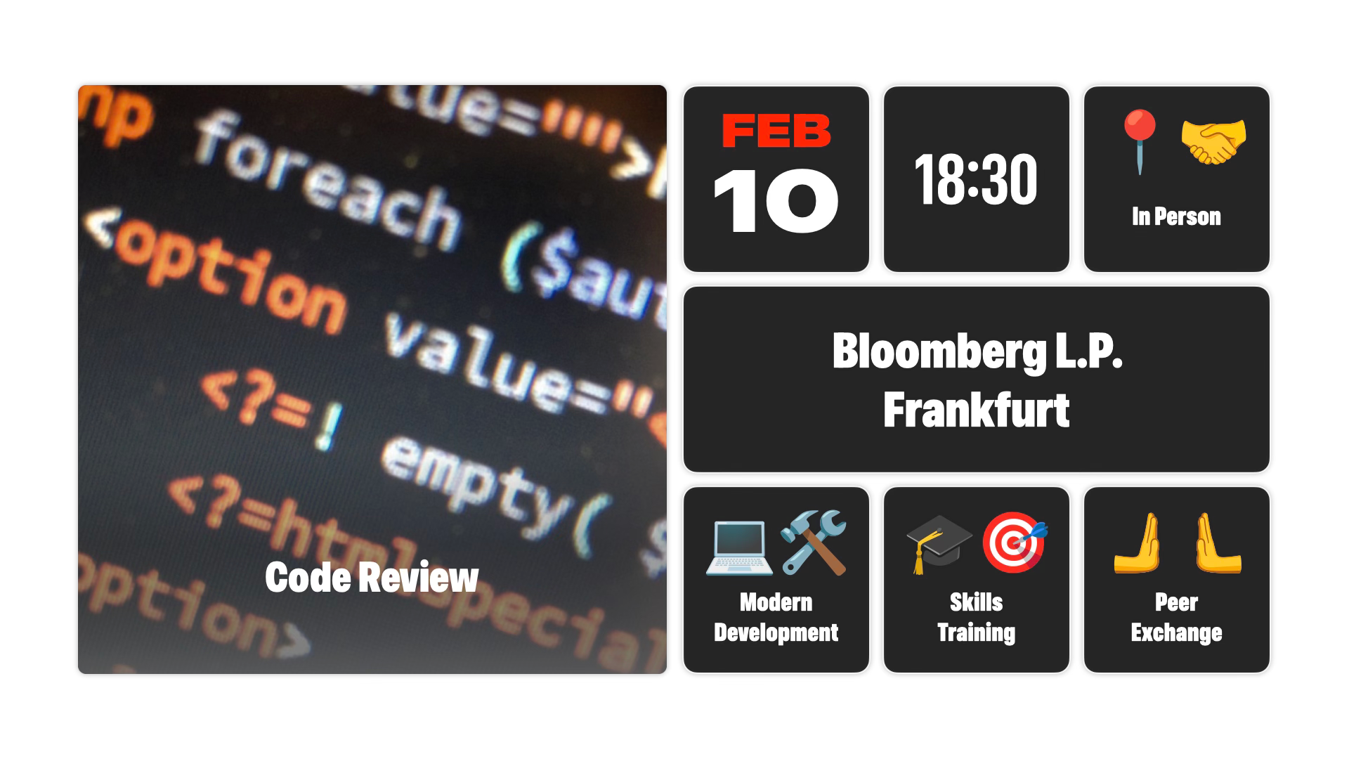 This time we will be at Bloomberg, Neue Mainzer Str. 75, near subway station Alte Oper and S-Bahn station Taunusanlage.