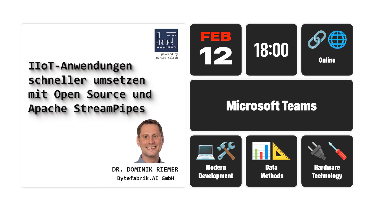 Die Teilnehmenden erfahren, wie sich mit frei verfügbarer Open-Source-Software in kurzer Zeit mehrwertbringende IIoT-Anwendungen und Datenanalysen entwickeln lassen und erhalten zudem einen Überblick über die Open-Source-Landschaft der Apache Software Foundation im Bereich des Industrial Internet of Things.