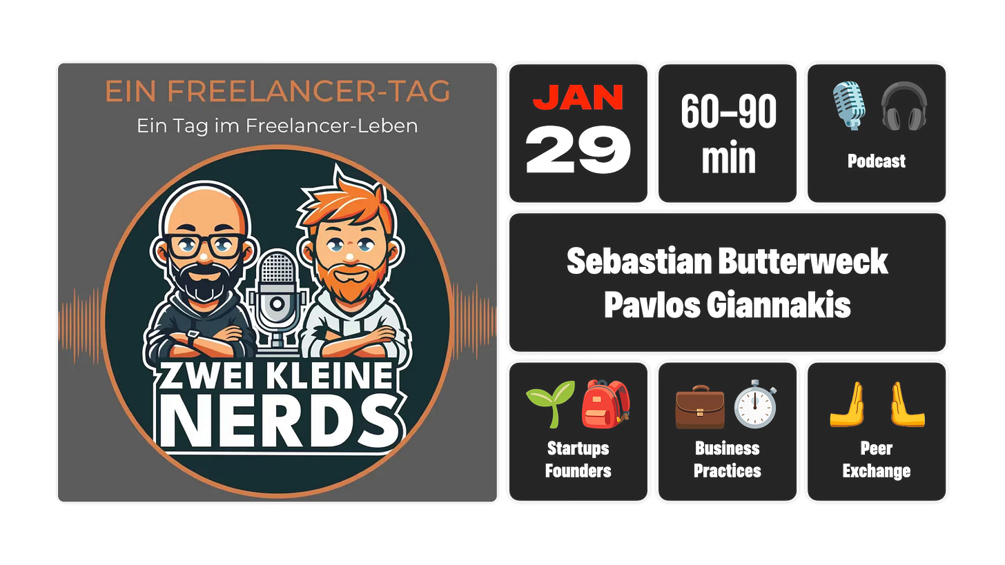 In dieser Folge nehmen Sebastian und Pavlos euch mit durch ihren typischen Arbeitstag – vom ersten Kaffee über Meetings, Coding-Sessions und spontane Kundenfragen bis hin zum Feierabend. Dabei geben wir ehrliche Einblicke in unsere aktuellen Projekte, sprechen über Kontextwechsel, Fokuszeiten und die kleinen Routinen, die den Alltag strukturieren. Als Bonus gibt’s ein kleines Quiz zwischendurch, um den Freelancer-Alltag mit einem Augenzwinkern aufzulockern. Real Talk, Projekt-Insights und ein ungeschönter Blick hinter die Kulissen des Freelancer-Lebens.