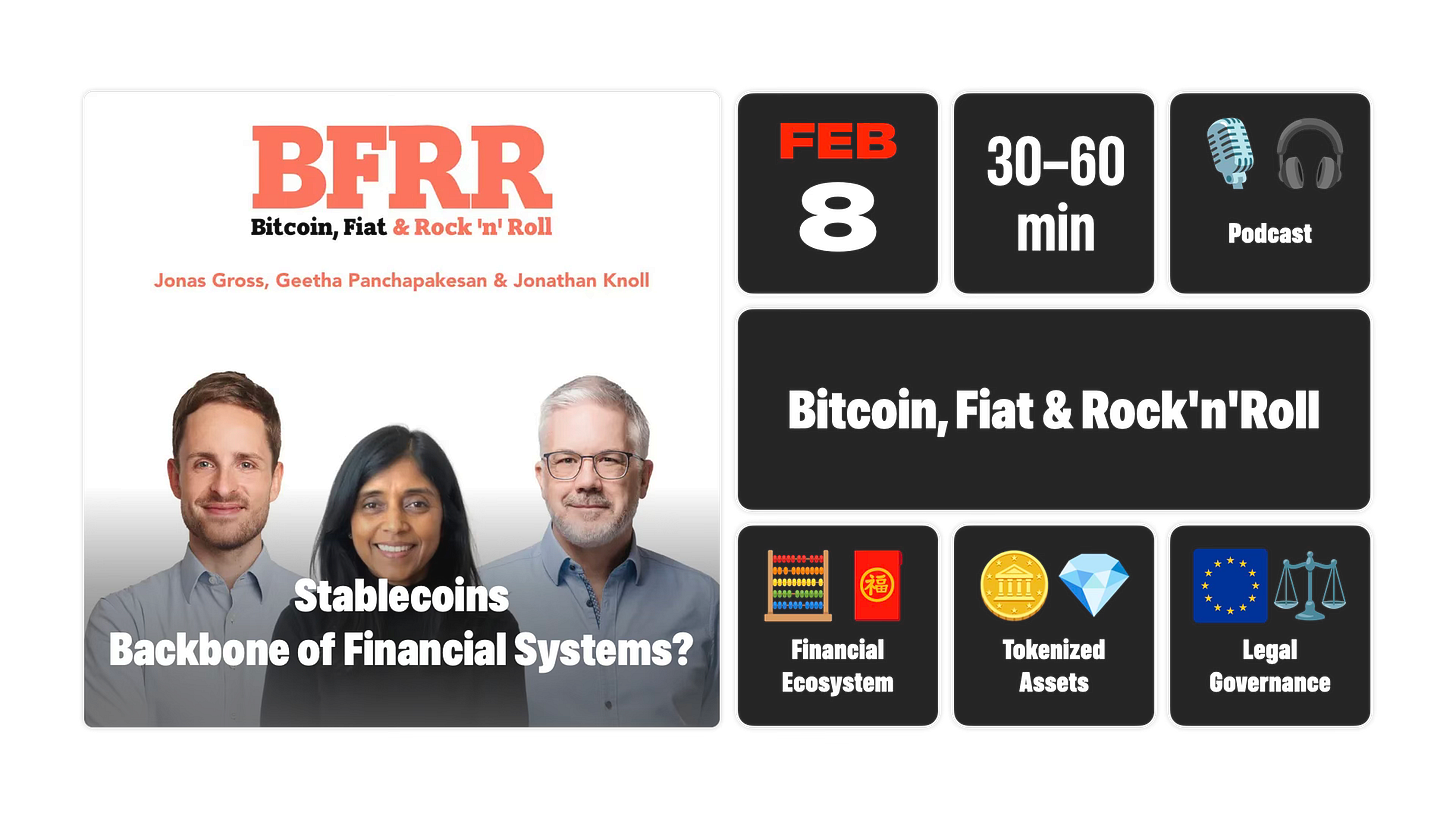 In this episode of BFRR (Bitcoin, Fiat & Rock and Roll), co-host Jonas is joined by guest host Jonathan Knoll for a deep dive into one of the most important shifts in digital finance: stablecoins moving from a crypto-native product to real payment infrastructure.