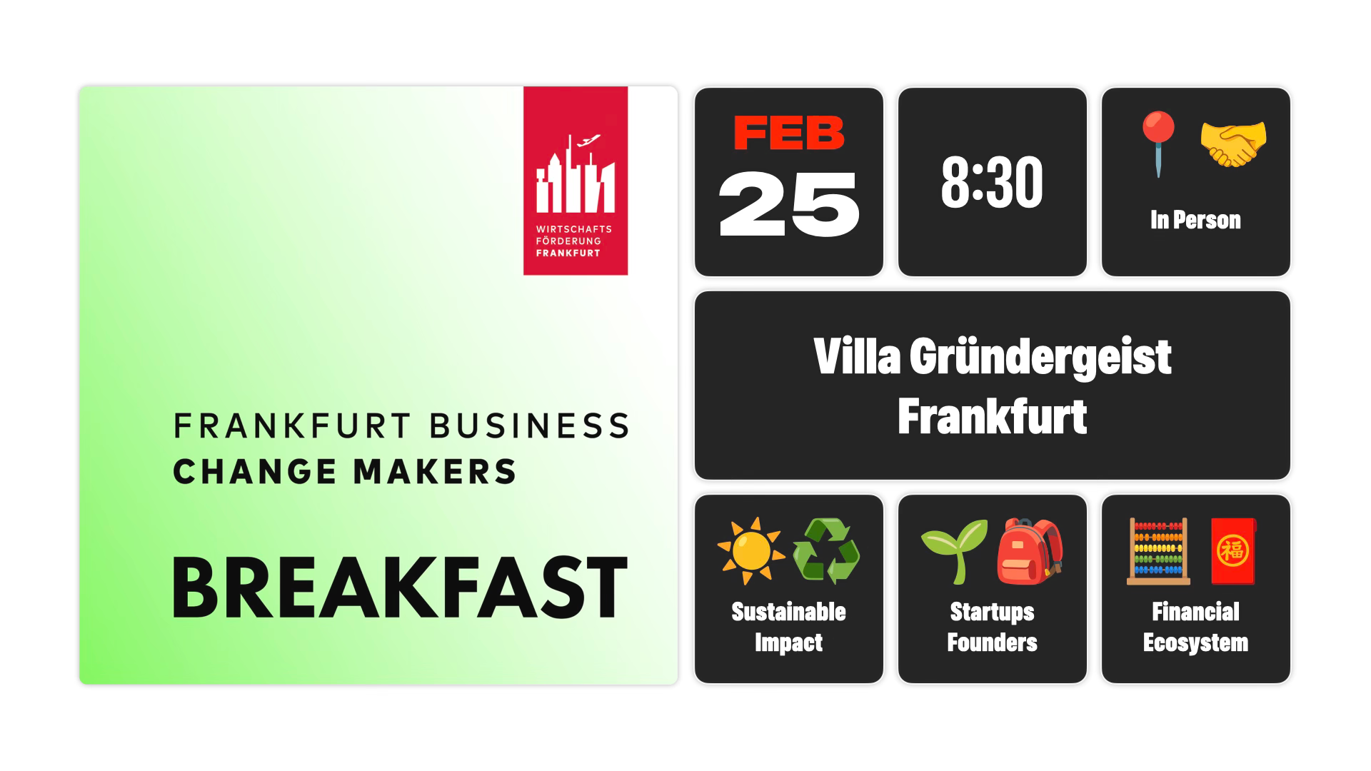 Mit dem Frankfurt Business Change Makers: Breakfast startet am 25. Februar 2026 eine neue Networking-Reihe für alle, die wirtschaftlichen Erfolg mit gesellschaftlicher Wirkung verbinden möchten. In entspannter Atmosphäre bei Kaffee und Croissants geben zentrale Akteurinnen und Akteure des Impact-Ökosystems Einblicke in ihre Förderinstrumente, Programme und Unterstützungsangebote.