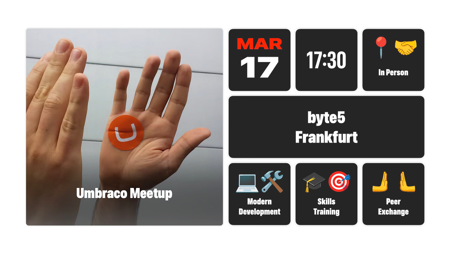 This meetup is all about learning together, sharing ideas, connecting with Umbraco friends and making new ones. Whether you are an experienced Umbraco developer or just starting your journey, you are very welcome to join us.