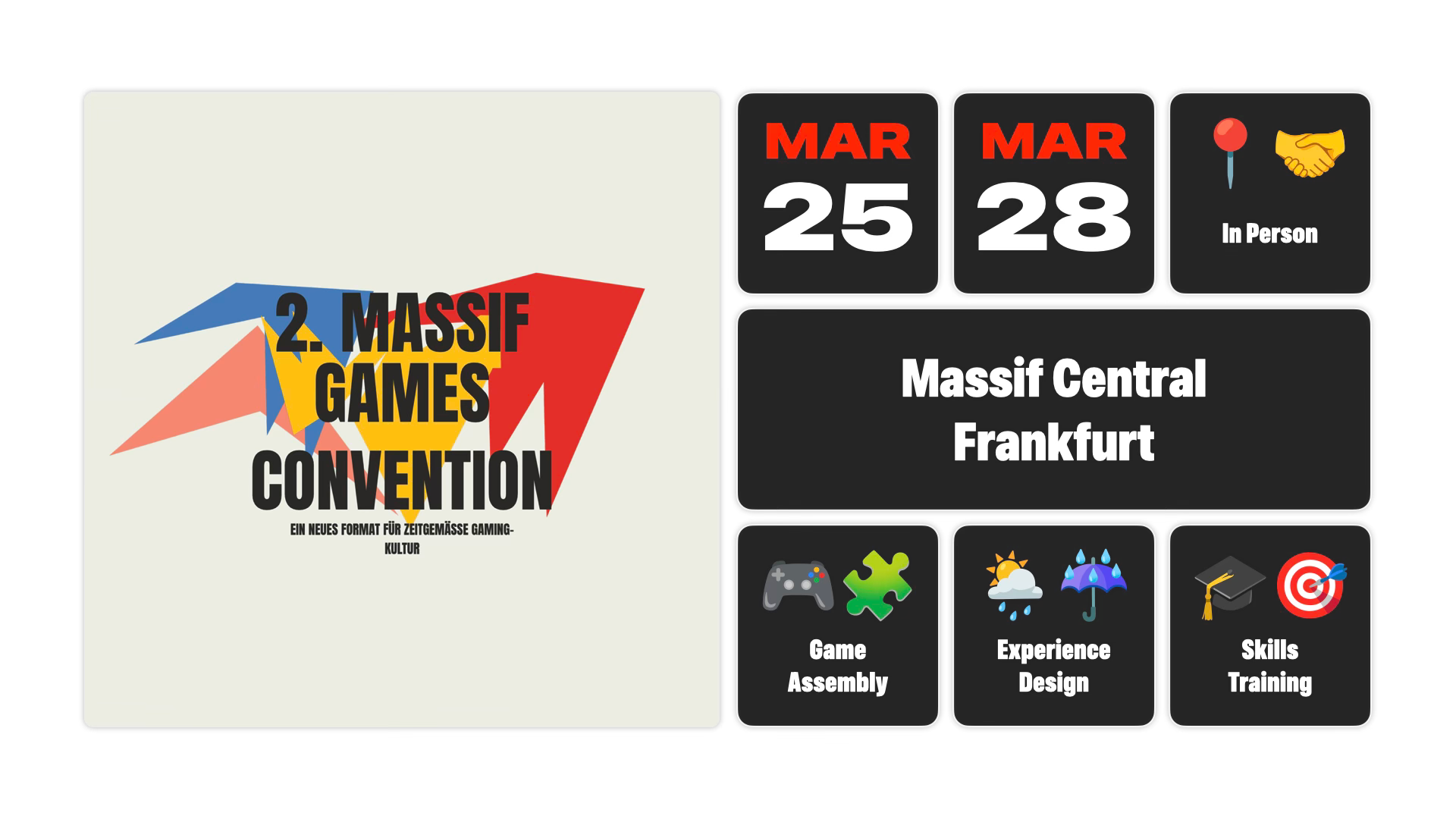 Die Massif Games Convention macht Frankfurt vom 25. bis zum 28. März 2026 nicht nur zum Eldorado für Computerspiel-Fans, sondern vor allem zur Experimentierfläche für alle, die selbst Spiele machen (wollen) — vom neugierigen Einsteiger bis zum etablierten Studio. Im Zentrum steht die Zugänglichkeit: Besucher:innen können fertige Indie-Games anspielen, an kompakten Einsteiger-Workshops zu Minecraft, Unity & Co. teilnehmen und in Hands-on-Sessions die ersten Schritte im Game-Design erleben.
