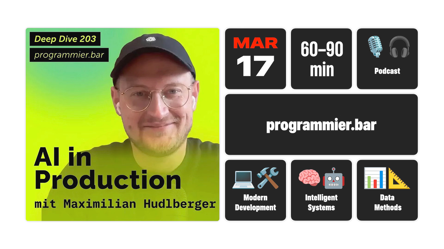 Wir sprechen mit Maximilian Hudlberger, Solution Architect bei OpenAI, über Best Practices für AI in Production. Max erklärt, wie Unternehmen verschiedenster Größe Large Language Models in ihre Anwendungen integrieren – von klassischen Chatbots über Klassifizierungsaufgaben bis hin zu komplexen Multi-Step-Agenten, die Workflows automatisieren. Dabei geht es um typische Patterns, häufige Herausforderungen sowie die Unterschiede zwischen Start-ups und großen Enterprises bei der Umsetzung.