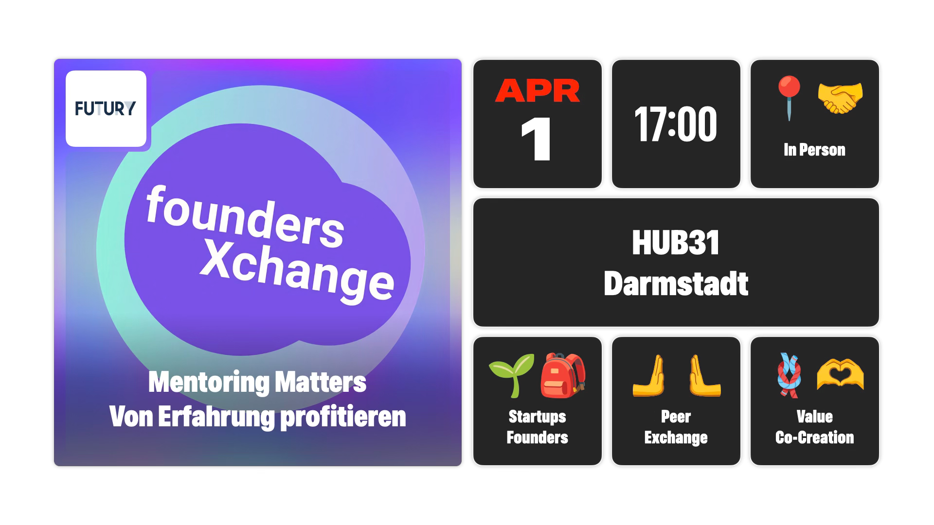 Ob am Anfang oder bereits im Wachstum: Erfahrung, ehrliches Feedback und der richtige Austausch können in jeder Phase eines Unternehmens den Unterschied machen. Genau hier setzen wir an. Im Rahmen des fXc zeigen wir, warum Mentoring ein zentraler Erfolgsfaktor für Gründer:innen ist, wie wir aktiv dabei unterstützen – und welche vielfältigen Möglichkeiten sich für Euch durch starke Partner aus Darmstadt ergeben.