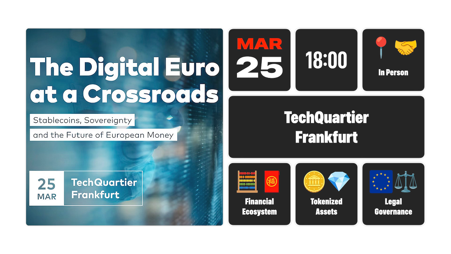 Stablecoins, Sovereignty and the Future of European MoneyCritical Software, the main sponsor of this executive evening at TechQuartier in Frankfurt, is bringing together senior leaders from banking, fintech and payments to discuss the future of digital money in Europe.